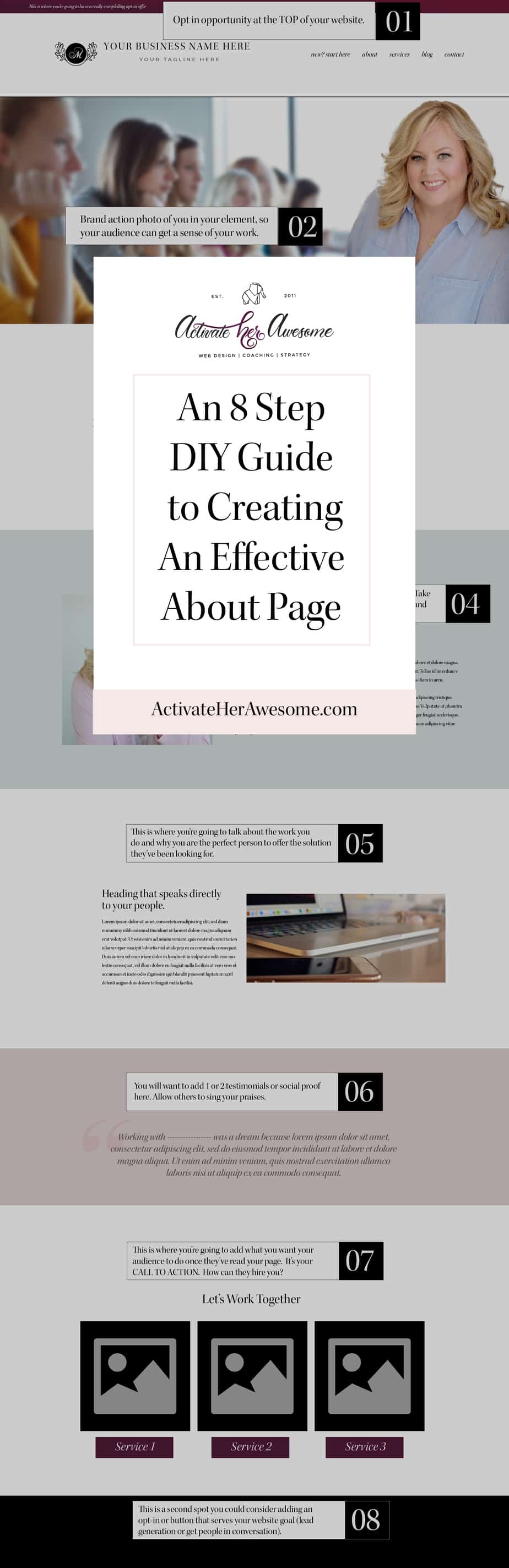 Today, I’m going to be sharing eight simple steps that, when combined, will create an effective about page that will introduce and capture your audience’s attention while positioning you as the expert to solve their problem.