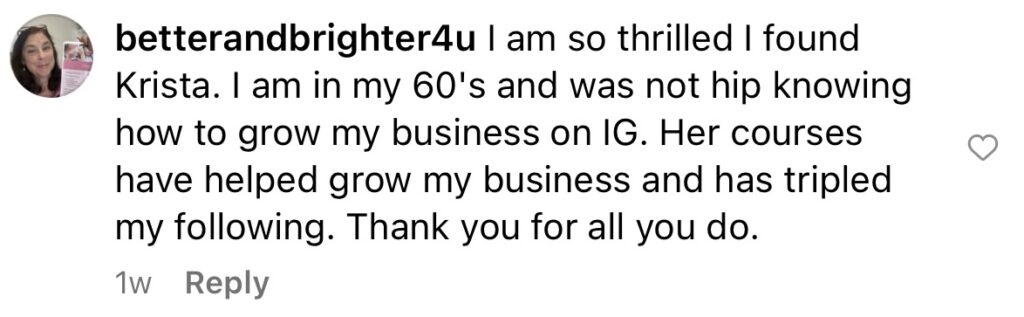 NO website course, website + tech strategy live weekly callNO weekly live calls with Krista (or recordings if you prefer to listen + learn)NO monthly mindset call with life coachNO live onboarding call